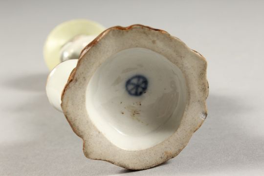 A GOOD 19TH CENTURY HOCHST PORCELAIN FIGURE OF A YOUNG GIRL holding a flower, wearing a large hat.