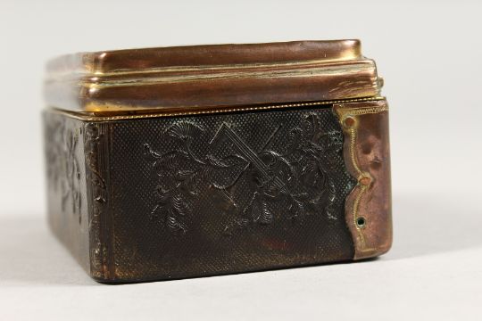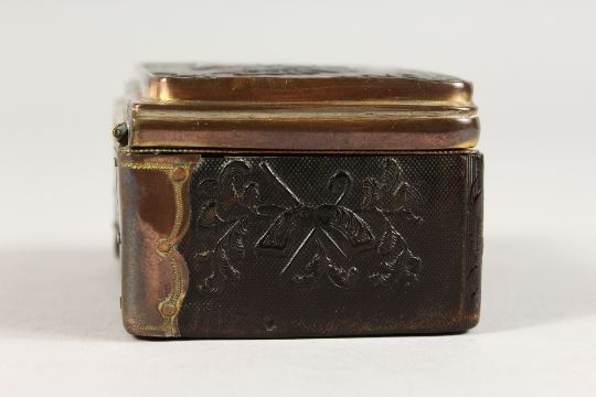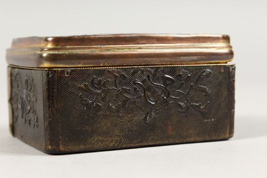 AN 18TH CENTURY TORTOISESHELL BOX AND COVER with musical trophies in relief.