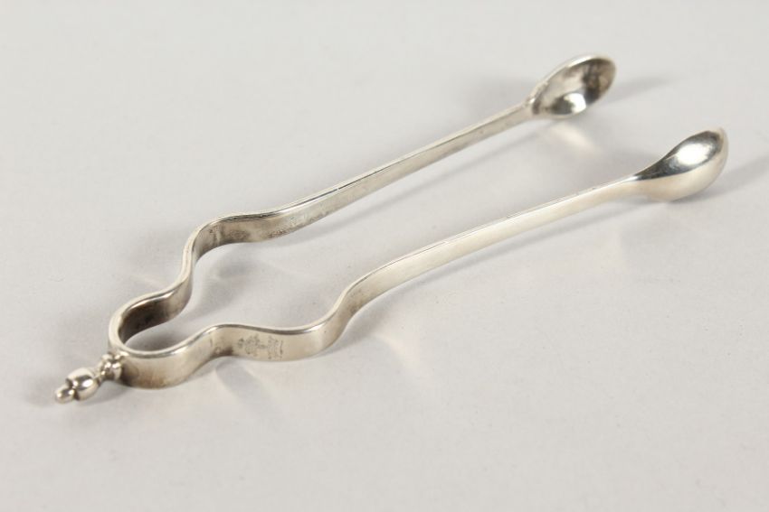 A VERY RARE PATTERN GEORGIAN SILVER SUGAR TONGS.