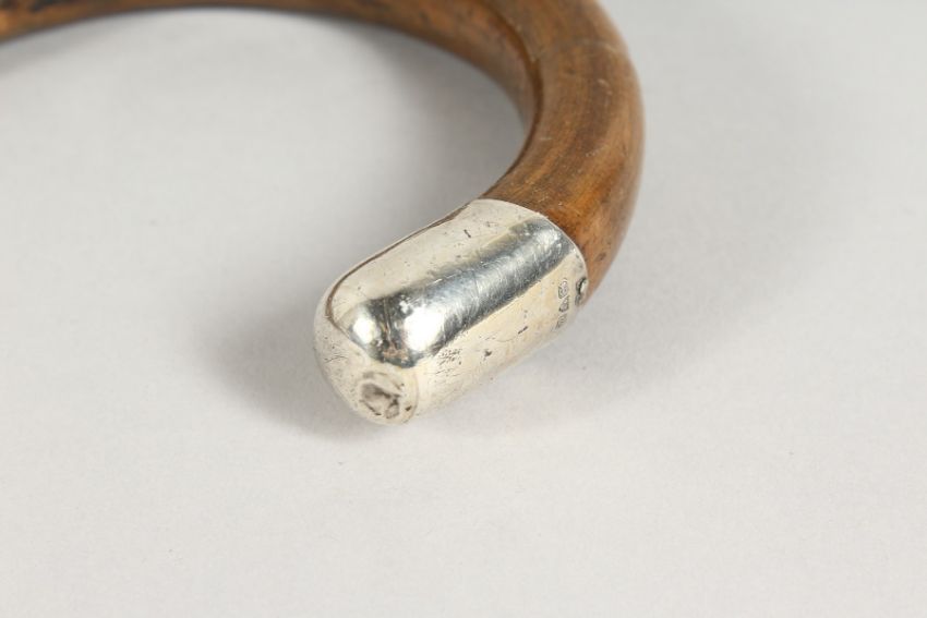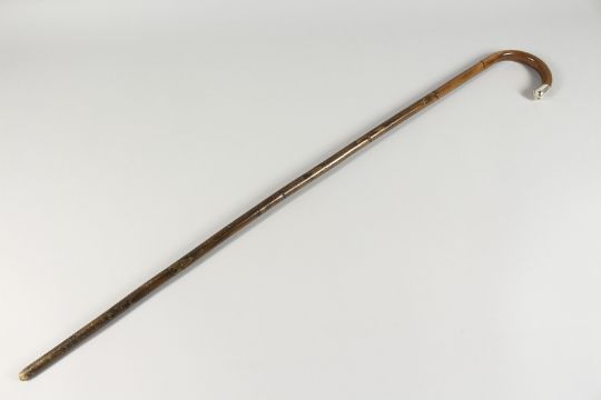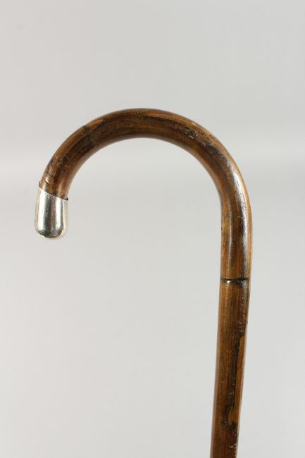 A VICTORIAN SILVER TIPPED WALKING STICK.