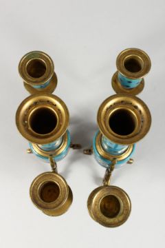 A GOOD PAIR OF 19TH CENTURY FRENCH CHAMPLEVE CHINESE DESIGN STICKS, with double scrolling branches and ormolu.