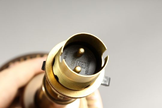 A PAIR OF CUT GLASS AND GILT ELECTRIC LAMP BASES.