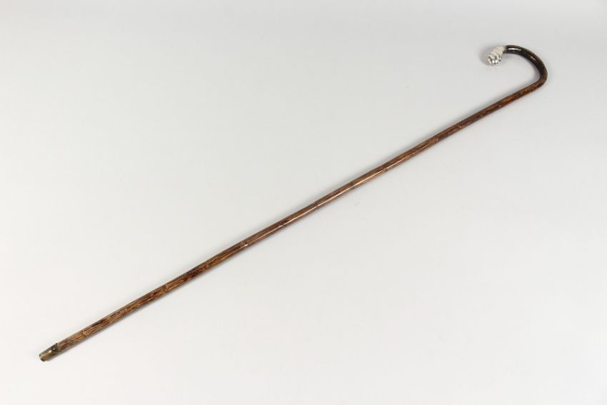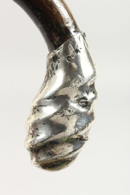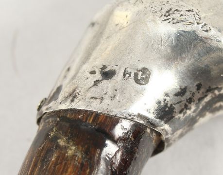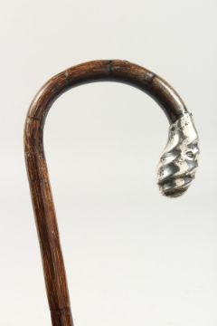 A WALKING STICK with silver handle.