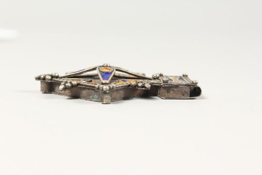 AN ISLAMIC SILVER AND ENAMEL PENDANT.