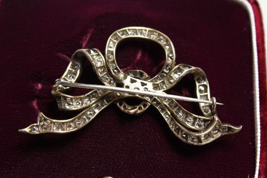 A VERY GOOD VICTORIAN DIAMOND SET BOW BROOCH.