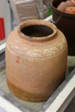 A terracotta rhubarb forcer.