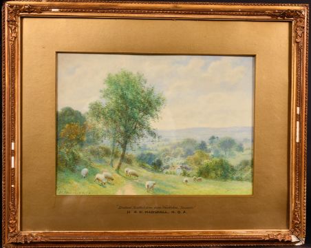 Roberto Angelo Kitterminster Marshall (1849-1926) British. 'Distant Southdowns from Warbleton, Sussex', Watercolour, Signed, 10" x 14".