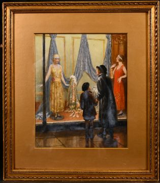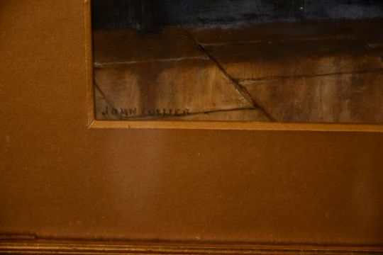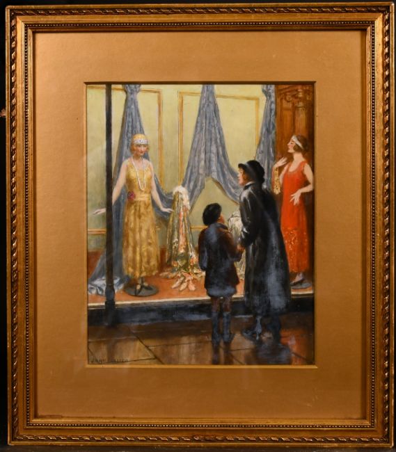 John Collier (1850-1934) British, 'The Shop Window', A mother and child gazing at an elegant shop display (Selfridges by repute), oil on board, 11" x 9".