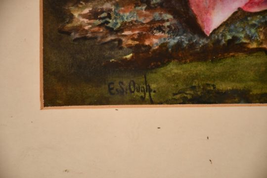E.S. Ough (early 20th century), A still life study of roses, watercolour, signed, 6.5" x 11".