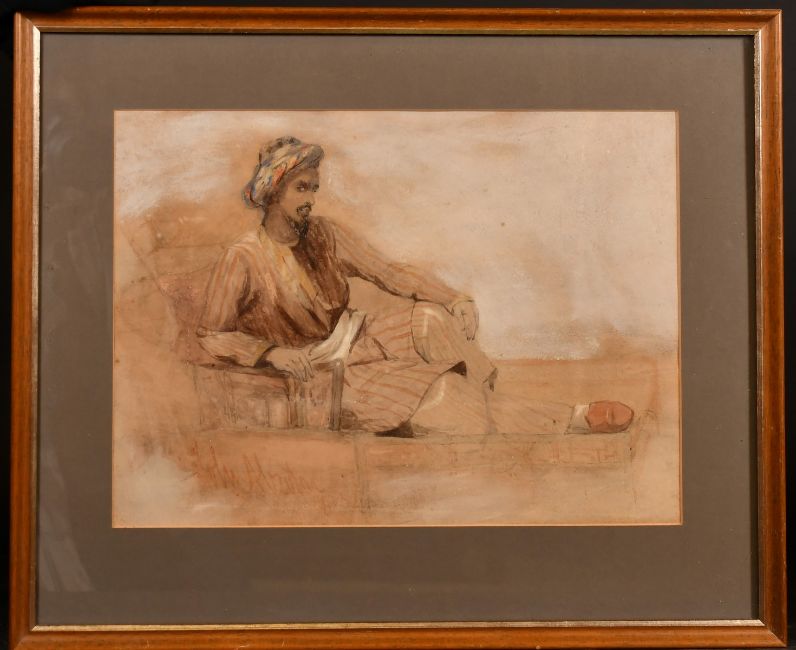 John Absolon, R.I., N.W.S. (1815-1895) British, An Eastern man reclining, watercolour with pen and ink, highlighted with bodycolour, Signed l.l, 12" x 15.75".