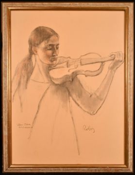Zsuzsi Roboz (1929-2016) Hungarian, A portrait of Viktoria Mullova the violinist at rehearsal, pastel, signed and inscribed, 36" x 26".