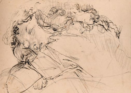 Follower of Augustus John (1878-1961) British, sketch of a resting girl, mixed media, 3.75" x 5", (unframed).