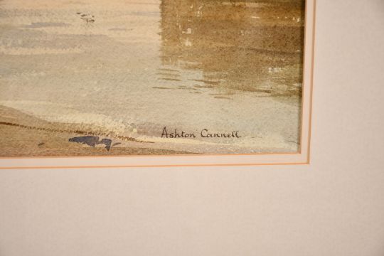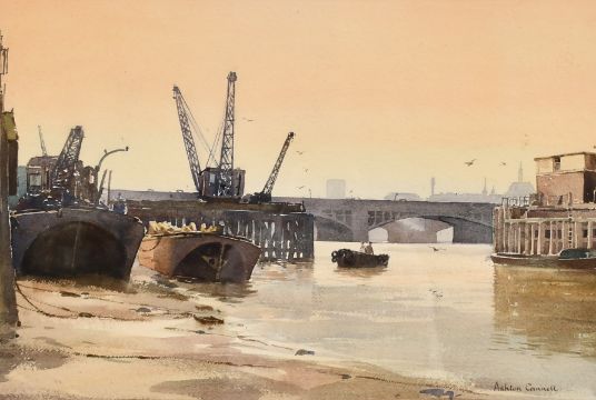 Ashton Cannell (1927-1944) British, 'Evening At Bankside Blackfriars Bridge', watercolour, signed and inscribed on label verso, 13.25" x 19.75".