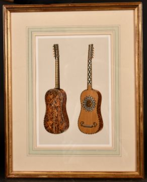 A set of three prints of stringed instruments, from the publication 'Musical Instruments, Historic, Rare, Unique', by Hipkins, each 12.25" x 8", (3).