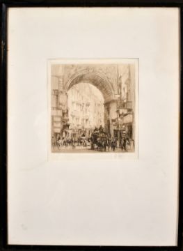William Walcot R. E. Hon. R. I. B. A. (1874-1943) Scottish, 'Arc San Carlo - Naples', Drypoint with plate tone, signed in pencil and inscribed verso, dated '1921', 8" x 7".