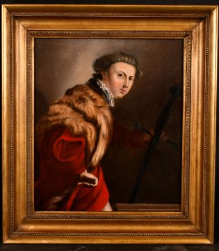 19 century school, A half-length portrait of a warrior, oil on panel, 16" x 14".