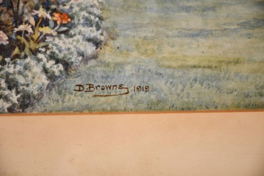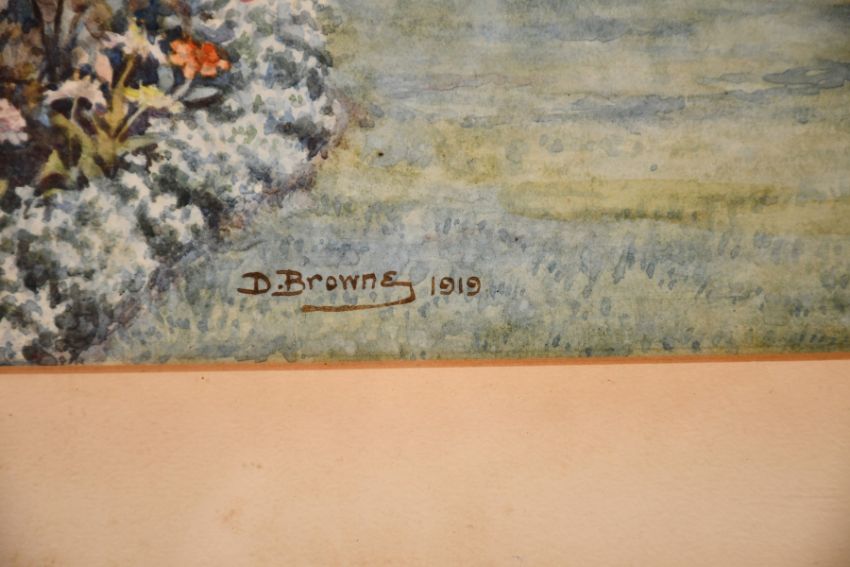 D. Browne, British, A scene of a country garden in bloom, watercolour, signed and dated '1919', 9" x 14.5".