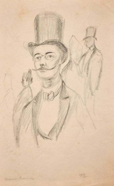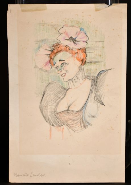 After Toulouse-Lautrec (1864-1901) French, a drawing of 'Marcelle Lender', pencil, 9 x 6.5", and a pencil drawing of a gentleman, initialed, 11" x 7.5", unframed. (2)