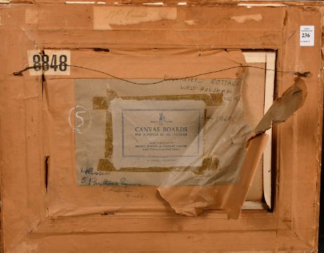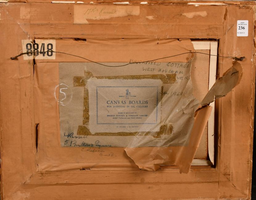 Margot Russell (1913-1988) British, 'Brickfield Cottage, West Hougham', oil on canvasboard, signed, 10" x 14".