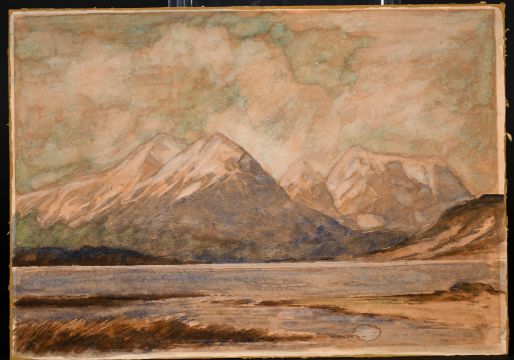 A pair of Greek landscape scenes one with woodland and mountains beyond the other of a lake with mountains beyond, watercolour, one inscribed verso, both 9.5" x13.5"