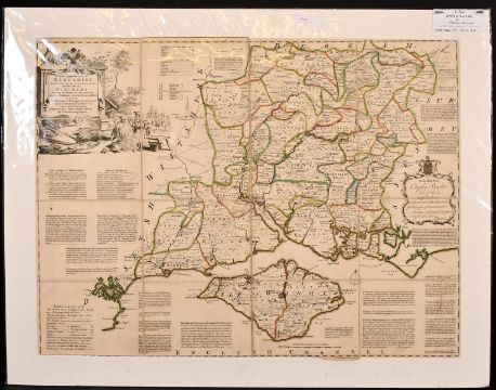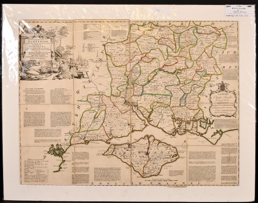 A Map of Hampshire by Thomas Kitchen, circa 1760, hand-coloured, with original carrying case, 20" x 26.5".