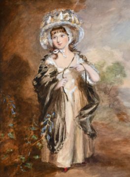 Circle of Daniel Gardener, Portrait of a young girl in a hat, watercolour, 11" x 8.25", (unframed).