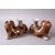A PAIR OF CHINESE 18TH / 19TH CENTURY FAMILLE ROSE DOG FORMED CANDLESTICKS, with canton decorated holders and orange and gilt details, 16cm.