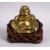 A 19TH CENTURY CHINESE BRONZE FIGURE OF BUDDHA & STAND, seated with his hand upon his knee, in a carved hardwood chair formed stand , 11cm x 11cm.