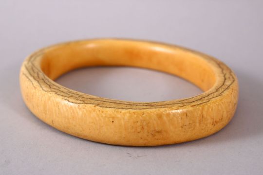 A LARGE 19TH CENTURY OR EARLIER CARVED IVORY BANGLE, 13cm external
