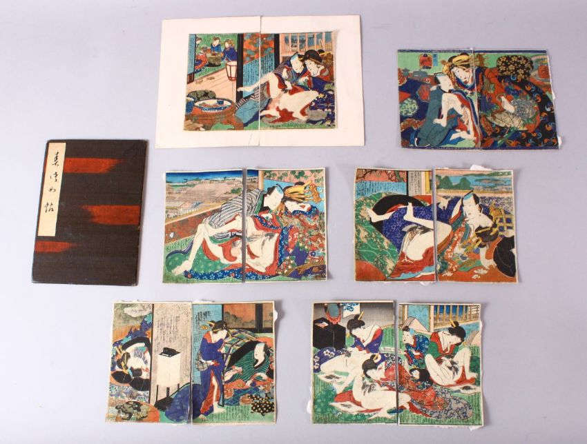 A COLLECTION OF 10 JAPANESE MEIJI PERIOD WOOD BLOCK SHUNGA EROTIC PRINTS, each of varying erotic scenes, varying sizes (10)