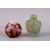 A GOOD CHINESE PEKING GLASS OVERLAID SNUFF BOTTLE & OTHER, the stuff bottle overlaid with scenes of bats, peach trees and figures in landscapes, 6cm, together with a green crystal / hard stone prunus carved bottle, 7cm (2)