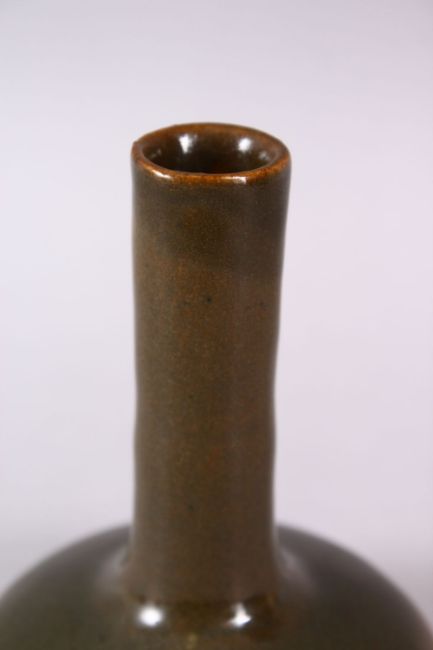 A CHINESE TEA DUST GLAZE PORCELAIN VASE, the body with a graduated tea dust glaze, base with an impressed mark, 13.5cm high.