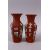 A PAIR OF CHINESE ENAMEL YIXING CLAY HEXAGONAL VASES, the body with display of flora and calligraphy in enamel, the bases with impressed marks, 16cm high.