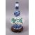 A CHINESE QING STYLE BLUE, WHITE AND FAMILLE ROSE DOUBLE GOURD DRAGON PORCELAIN VASE, the body with underglaze blue lotus decoration, with twin dragons chasing the pearl, with a six character mark to base, upon a carved hardwood stand, the vase alone 23.5cm high.
