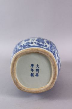 A CHINESE BLUE & WHITE KRAAK DECORATED PORCELAIN DOUBLE GOURD VASE, with panels of figures in landscapes, roundel of phoenix and floral decoration, the base with a six character mark, 34cm high