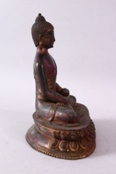 A TIBETAN / CHINESE BRONZE FIGURE OF BUDDHA, in a seated meditating position holding a burner, seated upon lotus, 21.5cm high x 17cm wide.