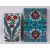 TWO GOOD IZNIK POTTERY TILES, one with white ground and decorated with formal floral motif, 21cm x 12cm , the other with a blue ground with floral motif, 24cm high x 16cm.