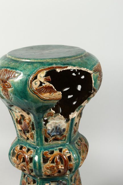 A PAIR OF CHINESE POTTERY GARDEN SEATS (one AF) 18 in. high.