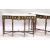 A GOOD PAIR OF LOUIS XVI STYLE BREAKFRONT CONSOLE TABLES with white marble tops, fitted with a central door, small porcelain panels to the frieze, supported on tapering legs with uniting stretchers. 4 ft. 1 in. long x 1 ft. 4 in. deep x 2 ft. 10in. high.