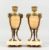 A GOOD PAIR OF GILDED BRONZE AND MARBLE CASSOLETTES with reversible tops, ram's masks, on circular marble bases.