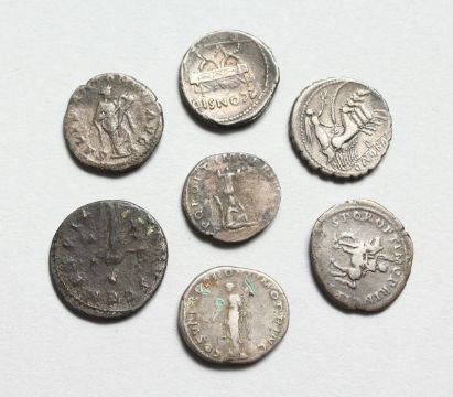 A SMALL COLLECTION OF ROMAN AND GREEK CLASSIC SILVER COINS (7)