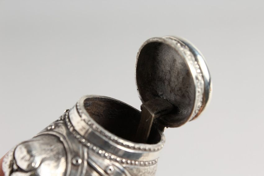 A HEAVY SOLID SILVER VICTORIAN STILL DOG VESTA