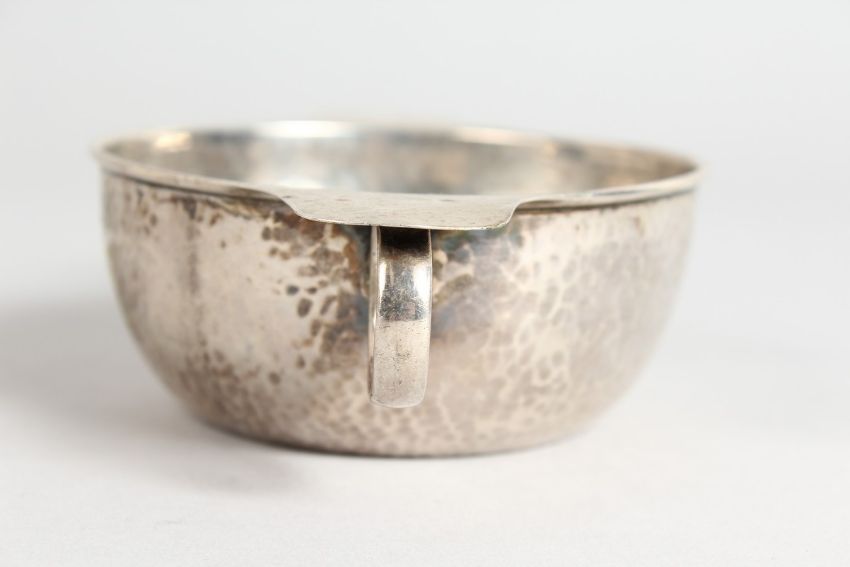 A LIBERTY & CO. CIRCULAR SILVER HAMMERED TWO HANDLED BOWL