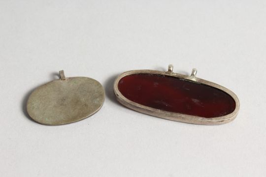 TWO ISLAMIC SILVER PENDANTS with calligraphy.