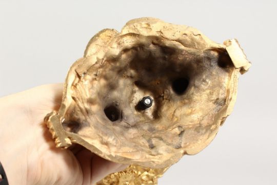 A GILT BRONZE TWO HANDLED PEDESTAL COMPORT