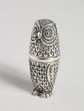 A SILVER OWL THIMBLE CASE