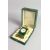 A LOOPING MALACHITE AND METAL CLOCK, 4 inches high in a fitted case.