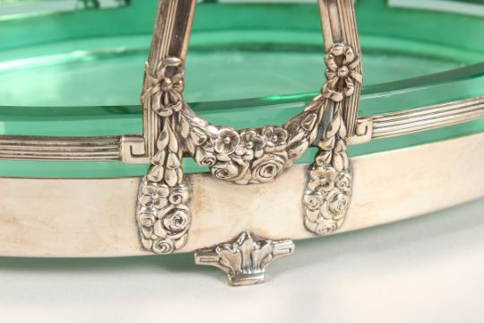 A GOOD W.M.F. OVAL CENTREPIECE - BASKET with glass liner.