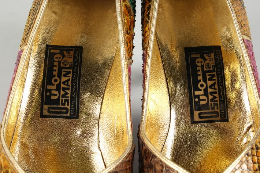A PAIR OF OSMAN SNAKESKIN DESIGNER SHOES
