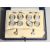 A BOXED SET OF 9ct WHITE GOLD & MOTHER OF PEARL DIAMOND SET CUFF LINKS AND STUDS